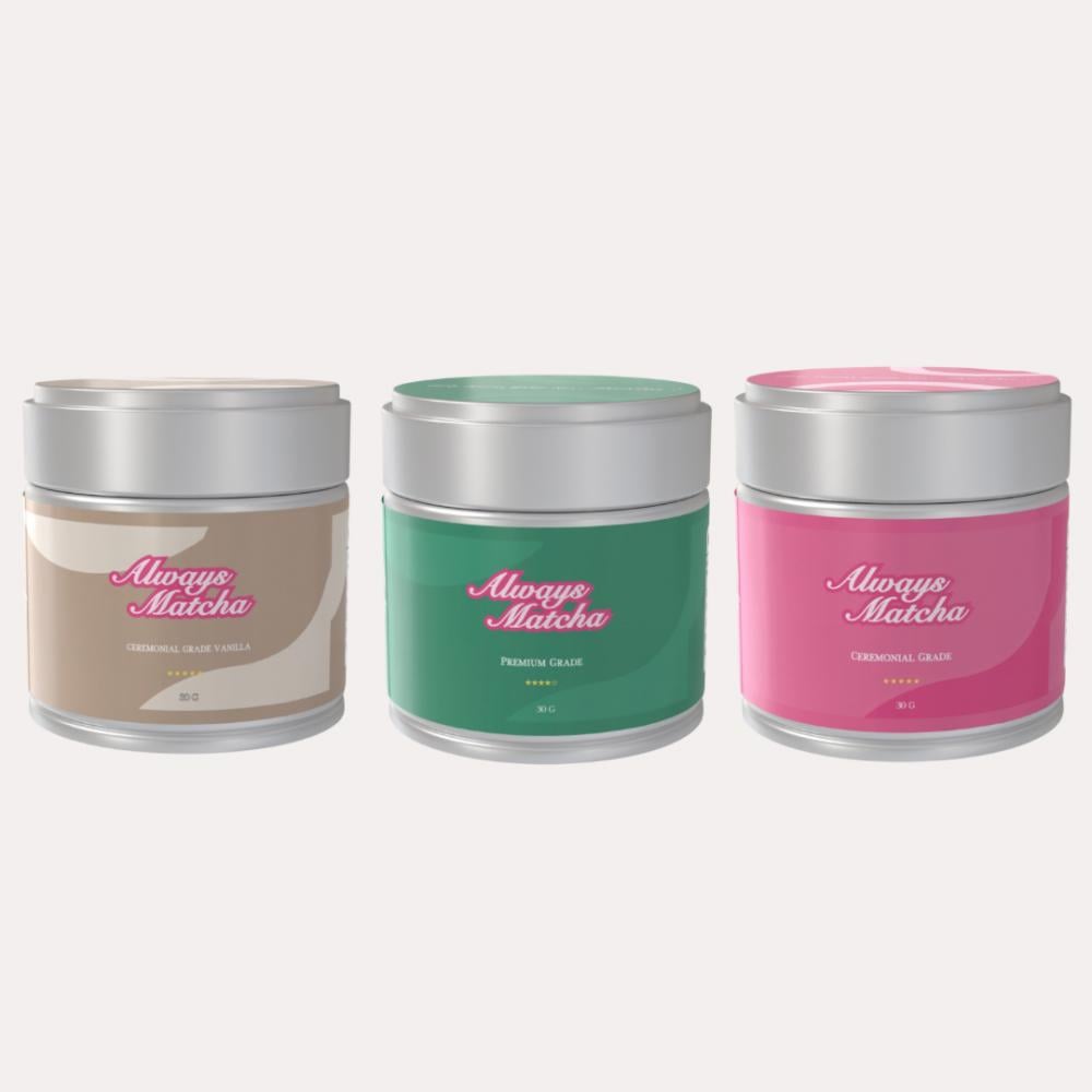 اكتشف عالم الماتشا مع هذه الباقة المميزة التي تضم ثلاث نكهات فريدة تجمع بين الجودة والطعم الأصيل. استمتع بتجربة متكاملة تلبي جميع الأذواق، سواء كنت تبحث عن النقاء الفاخر، القوة المركزة، أو لمسة الفانيلا الناعمة.